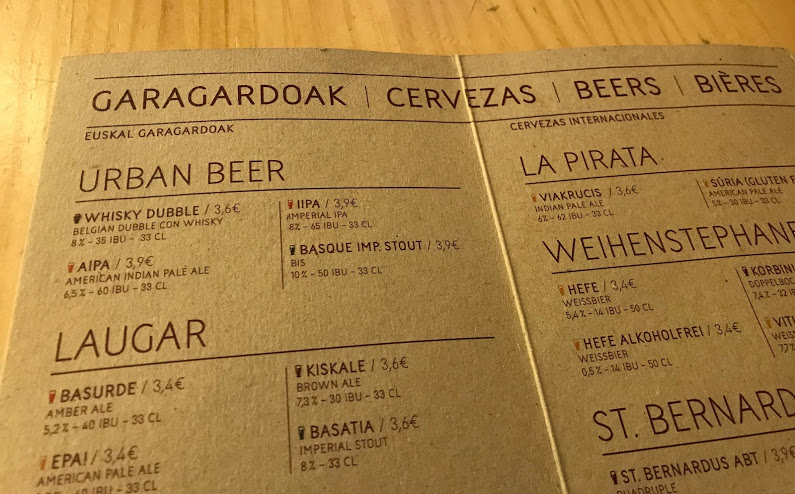 Zazpi Biden pullolistaa silmäillessä varmistui, että olut on baskin kielellä garagardoa. Eipä olisi voinut etukäteen arvata tai päätellä. Paikallista IPAa nyt pullosta, 6,1%, 70 IBUa. Tunkkainen, ei kunnolla hedelmää, ei katkeruuskaan tunnu. Baari tyhjeni täysin klo 14:30, omituista. Nyt soundtrackina Neil Youngin Heart of Gold, kehno olut. Bilbao, Zazpi Bide, 10.3.2019.