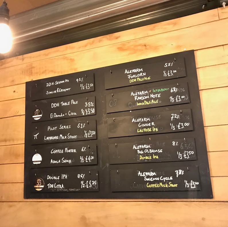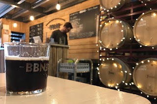 Siirtyminen radan toiselle puolelle, BBNO-oluita on ollut hyvin Suomessakin tarjolla, joten yritin löytää maisteltavaksi jotain uutta. Tarjolla viisi omaa, viisi Alefarmin olutta, kaikki kegejä. Runsaasti tynnyrejä esillä, sieltä ilmeisesti monenlaista tulossa tarjolle. Islay-viskimaitostoutissa 5,1%, selvästi viskisyyttä, savuakin. Katkeroa tuntuu kovasti, mutta ehkä sekin heijastuu tynnyristä. Vähän karkeaa, laktoosi ei pääse esiin. Lontoo, Brew By Numbers, 8.12.2018.