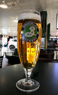 Sadekuurojen välissä ehdin hakea repun hotellilta ja hypätä lentokenttäbussiin. Landvetterin kentän baarit odotetun vaatimattomia. Sporttiketjubaarissa testasin aiemmin kokeilemattoman Brooklynin oluen, tehty kai ketjulle pelkästään. 5,3%, äärimmäisen kirkasta kultaista olutta. Perushedelmäinen makea aromi, hillittyä ja tylsää menoa kaikin puolin. Göteborg, Landvetter Flygplats, O’Leary’s, 1.5.2018.