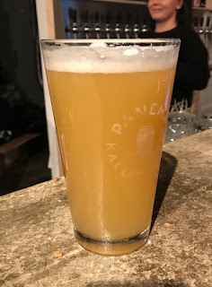 Harjun uuden panimobaarin talon olutta, pantu nyt alkuun Tuusulassa. 6,5%, samea, hedelmäinen, pehmeä, puhdas. Lähes kohtuullisesti katkeroakin mukana. Yllättävän hyvä. Kolmas Panema-vierailu neljässä päivässä, olisiko tässä lopulta jo kantabaarin alkio kasvamassa? Panema, 30.1.2018.