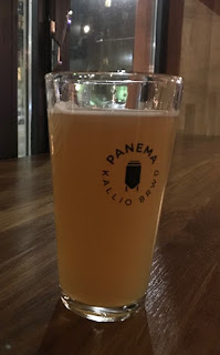 Asunnon siivousillan jälkeen rentoutumaan oluen pariin Panemaan. Jääkaapissakin olisi ollut ennenkokeilemattomia virvokkeita, mutta miksipä en olisi lähtenyt läheiseen laatubaariin. Uutta olutta Tuusulasta, veriappelsiinivanilja-NEIPA, 5,5%. Oluen ideoinut Pien-olutkauppaketju. Samea, hyvin appelsiininen tuoksu. Maku tosiaan hyvin vaniljainen. Ymmärrän, että halutaan kokeilla kaikenlaista, mutta eiköhän tämä ole nyt syytä jättää yhteen keittoon. Vanilja, humalan hedelmäisyys ja lievä maltaisuus eivät todellakaan nivoudu harmoniseksi kokonaisuudeksi. Laimea katkera kiskaisu kammarin puolelle lähtee, mutta ei se paljoa auta. Ei kuitenkaan hapanta, mikä positiivisena seikkana huomioitava. Panema, 19.2.2018.