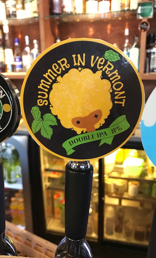 Länsi-Tuusulan Sarvivälkkeentien eteläisimmän (?, sijainti on vielä itselleni epäselvä, mutta tämä on tämänhetkinen näkemykseni) panimon Vermont-tupla-IPA saapui pääkaupunkiin niin kovalla rummutuksella, että en voinut olla reagoimatta tapahtumaan. Kyseessä on siis ehkä Suomen ensimmäinen Vermont-tyylinen DIPA. Puolikymmentä baaria oli saanut tämän ihmeen hanaan ja itse suuntasin Toukolaan kesäisessä säässä. Juoksulenkin ja pikkupyöräilyn jälkeen tämä 8-prosenttinen olut ei ehkä palautusjuomana ollut aivan ihanteellisessa käyttötilanteessaan. Sameaa olut on, siinähän tärkein Vermont-kriteeri jo täyttyi.— Tuoksu hieman epäilyttävä.— Maku on voimakkaan yrttinen, raikkaampaa mehumaista hedelmää voisi odottaa vahvemmassakin Vermont-tyylissä. Onneksi olut ei ole makea, aika paksua tavaraa, pihkaa, sinänsä tuoretta. Peräkärrykin on, kuivuus siis hyvää, mutta yrttisyys tekee kokonaisuudesta epämiellyttävän. Ei tajunnanräjäyttäjä, mutta paljon parempi kuin odotin, panimon ykköstuote tähän mennessä. Oljenkorsi, 3.5.2017.