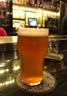 Askel alkoi jo painaa, mutta pyörähdin vielä Singular-baarissa. Vilkasta täälläkin, muuten aika persoonaton peruspaikka. Vain kuusi hanaa, ei kovin mielenkiintoista tarjontaa. Jostain syystä Bilbaossa hanat merkitään oikealta vasemmalle, käänteisessä järjestyksessä, sama systeemi täällä ja Penguinissa. Barcelonasta amber saison, 6,9%. Melko samea, estereitä on, mausteisuutta myös, lähes pippurinen. Bilbao, Singular, 9.3.2019.