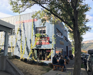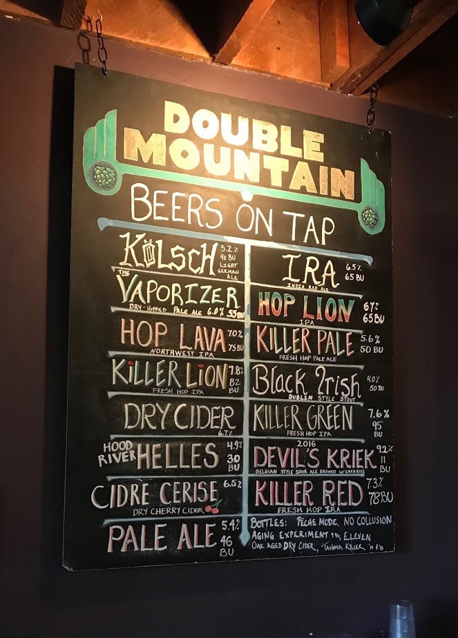 Kovaa tungosta täälläkin, mutta baaritiskille mahtui. Erinomainen baari jyrkässä rinteessä, hiljaisempaan aikaan varmaan vielä mukavampi tunnelma. Hood Riverin sunnuntairuuhka hieman hämmästyttää, täältä oli vaikea saada kohtuuhintaista majoitustakin. Don Youngerin kuva näkyy olevan täälläkin baarin takana peilin kyljessä. Caskista red alea, 6,5%, 65 IBU, Simcoe ja Brewer’s Gold. Pehmeää, maltaista, makeahkoa. Takasuora tyhjempi, mutta taas cask-käsittely saa ihmeitä aikaan, tykkäsin kovasti. Hood River (Oregon), Double Mountain, 23.9.2018.