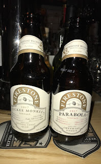 Maistelun pointtina oli kaksi pullo-olutnäytettä. Stickee Monkee on vahva belgi, quadrupel, rommi- ja tequilakypsytystä, luumutuoksua. Varsin makeaa, hedelmää, pehmeää. Oikein mukavaa. Toinen näyte Parabolaa, imperial russian stout. Bourbon-fiilistä, pehmeää kaakaota, kahvia, makeaa tämäkin. Vahvuuteen nähden vivahteikas, ihan kiva. Tommyknocker, 26.10.2017.