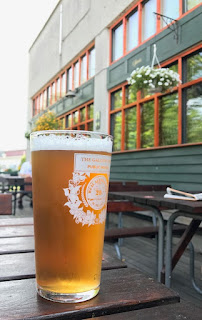 Olarista takaisin itään päin runsaat 3 km Niittykummun tuttuun tukikohtaan Espoossa. Lontoolaisoluessa vain 3,7%, varsin maltainen, hyvin puhdas ja kuohkea. Pähkinääkin on, vaikka näyttää enemmän golden alelta kuin bitteriltä, hyvä riilikäsittely. Katkeroa on, mutta tietysti enemmän voisi toivoa. Taas yksi esimerkki siitä, miten britit saavat runsaasti makua keveisiin oluihin. Enemmän juodessa tietysti ohuuskin tulee esiin. Toiseksi olueksi yritin tilata Thornbridgen—  Guineverea, mutta baarimestari tarjosi siitä ensin maistiaisen tuntien minun olutmaun. Ja todellakin, jotain todella epämiellyttävää mausteisuutta, ei kannata juoda. Loistavaa palvelua! Otin sitten Fat Lizardin Track Dayn, joka olikin hyvässä kunnossa. Espoo, Gallows Bird, 12.8.2017.