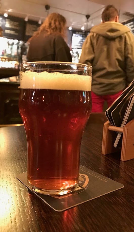 Viime syksynä join cask-versiota tuoreeltaan Olutexpossa ja vielä myöhemmin Kuikassa. Pähkinäistä ja luumuista otetta, mutta en oikein innostunut. Nytkin selvästi pähkinää tuoksussa, luumumaista kuivaa hedelmäisyyttä runsaasti. Ei mitään tuoreutta enää, aromihumalointi on häipynyt. Jotain puumaista tammisuutta, vaikka ihan metalliastiallahan tässä kypsyminen on tapahtunut. Hiilihappotaso on tietysti matala, tiettyä cask-pehmeyttä on tallella, mutta myös jotain robustimpaa fiilistä, joka tuntuu ehkä karkeutenakin. Alkoholi lämmittää ja monimuotoisuutta on useaan suuntaan. Baarimestari heitti vielä verrokiksi maistiaisen Vintage Ale 2017:n pulloversiosta, joka tuntui selvästi karkeammalta, ikääntyminen ja pehmentyminen on isommassa astiassa ollut selvästi kehittyneempää. Erittäin mielenkiintoinen kokeilu, enpä muista ennen juoneeni aged cask ale -tyyppistä kamaa. Angleterre, 11.11.2018.