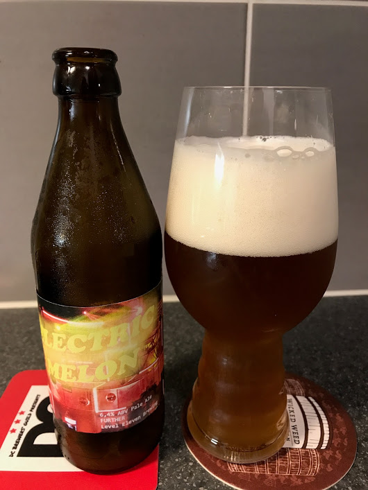 Vajaan vuoden tauon jälkeen Further Beer Posse -olutta, tosin tämä valmistajahan on käsittääkseni sulautunut Level Eleveniin. Sain tämän oluen ennen jenkkireissua HIMA-yhteisön maistelutilaisuudessa, joten pääkaupunkiseudun kotiolutskene on tiheää. Electric Melon on pale ale, 6,4%, suhteellisen tumman keltaista, voimakkaat sitrusaromit. Maku on pehmeän hedelmäinen trooppisesti, ananasta, miksei meloniakin, keskitasoisesti hiilihappoa. Runko on täyteläinen ja katkeruutta kasaantuu mukavasti peräkärryyn. IPA-tyylissäkin toimisi hyvin, erittäin hallittu. Jotain kritisoitavaakin pitäisi keksiä, ehkä karbonointia voisi hieman laskea, mallasrunkoa hieman kasvattaa, humalia joka osaan hieman enemmän. Mutta tämähän on erinomaisessa tasapainossa nytkin, täytyy väkisin pidättäytyä ylisanoista, ettei Mikko ylpisty liikaa. Ehkä jetlag alkaa vaikuttamaan arvostelukykyyn …