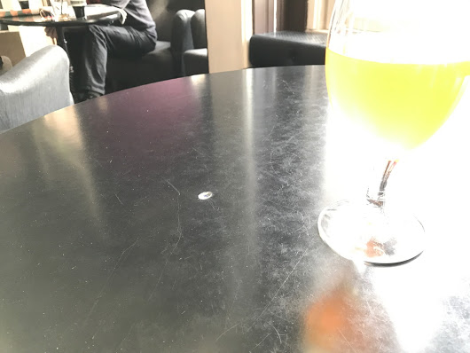 Mustassa Kynnyksessä ei ihmeempi oluttarjonta, mutta Hiisin oluita kuitenkin. IPAssa 6,2%, Cascade, Centennial, Mosaic, 65 IBU, vehnää.— Samea, karkeaa hedelmää, liian kylmää. Katkeruutta löytyy, mutta liian tunkkainen, ei hedelmää, varmaan vähän vanhempi pullo. Jyväskylä, Musta Kynnys, 17.6.2017.