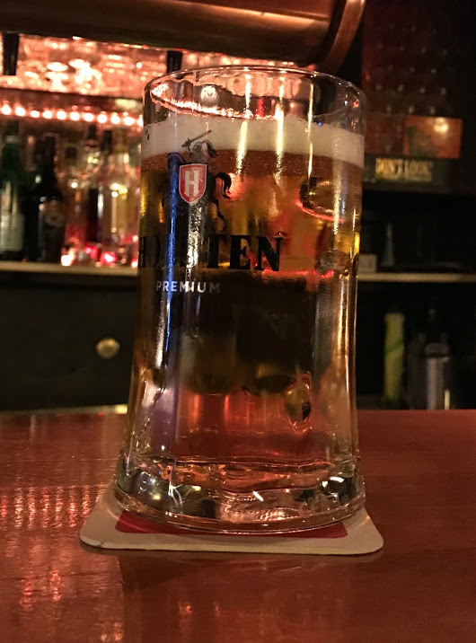 Ja vielä sitten lopulta viimeisenä iltana Hampurin perinteisintä olutta, Holstenkin nykyään Carlsberin hallinnassa. Tämä nyt pitäisi olla suhteellisen autenttinen maistelupaikka. Kirkasta kultaista olutta on, ohut vaahto. Maltainen, hieman makea. Hyvin samanlainen kuin edellinen Lübzer, mutta katkeruus selvästi heikompaa. Ei tämä Astran pahvisuuden asteelle mene, mutta ei ole paljoa vahvuuksiakaan. Makeus hallitsevaa. Hampuri, Zum Alten Ritter St. Georg, 15.10.2017.