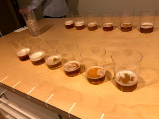 Tässä vaiheessa sain näkyville maistetut oluet ja asettelin ne oikealta vasemmalle oletettuun järjestykseen: