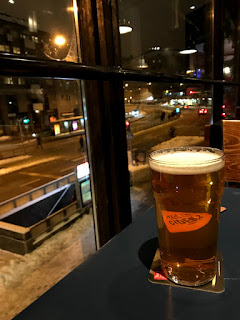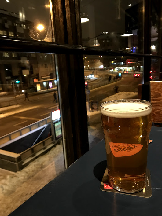 Huomasin somesta, että Kurvin näköalabaari Kolme Kaisaa olisi tehnyt kasvojen kohotustempauksen, mutta en oikein muutoksia huomannut. Ehkä asiakaskunta nyt keskiluokkaisempaa, hintoja ehkä nostettu? Huddersfieldin huippupanimon APAsta hanassa greippiversio, jota en ole ennen kokeillut. 5,5%, hyvin kirkas olut. Hedelmäinen maku, karamellia mukana, pastillisuus jatkuu takamatkalle, jossa katkeroakin yllättävän reippaasti. Jokin tässä kuitenkin tökkii, hedelmäisyys ei ole pehmeää tai raikasta. Kolme Kaisaa, 10.2.2018.