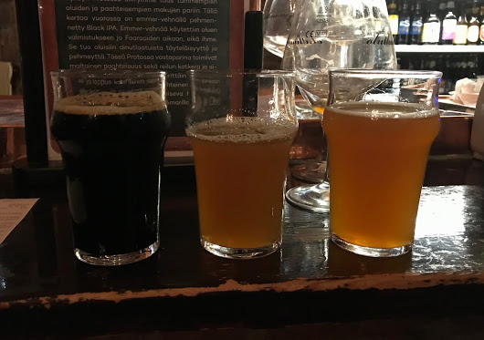 Pääsin pahasti myöhässä HOK-Elannon pienpanimotapahtuma FCBR:n Maistila-teistingiin Kuikkaan. Joni Harju kuitenkin hienosti vielä paikalla ja sain maisteluannokset eteeni. Erityisesti kiinnosti uusi Ella-humaloitu NEIPA Hoodie, 6,2%. Sosiaalinen tilanne ja pienehkö annos, muistiinpanot jäi vajaiksi. Sameaa tavaraa, hyvä ananaksinen mehuisuus, puhdas veto kaikin puolin, tietysti takamatkalla heikommin täytettä, mutta sehän on Maistilalla ollut harkittu ratkaisu koko ajan. Taas kuitenkin vakuuttava näyttö oululaisesta osaamisesta, tämä pitäisi tsekata vielä keskitetymmin myöhemmin. Ehkä en ollut juonut aiemmin aprikoosilla ryyditettyä Aprikoi-saisoniakaan, en ainakaan blogista löydä merkintöjä. Aprikoosipyrettä siis keittoon lisättynä, melkoisen hapan saison, tämä ei oikein minuun iskenyt, mutta todellakaan kovin keskittyneesti en päässyt olueen sisään. Kolmantena näytteenä tuttu Portieeri, joka maistui todella hienolta saisonin jälkeen. Kuikka, 10.10.2018.