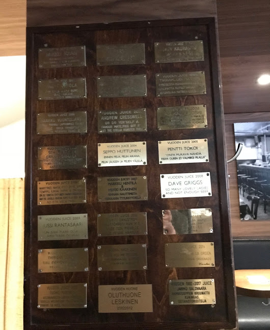 Perinteinen helmikuinen matka Ouluun. En ole missannut Oulun talvea vuoden 1982 jälkeen ja en halunnut tehdä sitä nytkään. Kirpeän aurinkoinen pakkaspäivä Perämerellä ja varsin poikkeuksellisesti paikallisbussi odotti lentokentän pysäkillä. Perinteisesti olen nähnyt tästä tunnin välein liikennöivästä bussista etääntyvät perävalot rynnätessäni terminaalista. Kello oli juuri lyönyt 11 saapuessani Rotuaarille. Astelin Leskiseen sisään ja tilasin paikallista olutta. Siirryin takaosan vakiopöytään, jossa merisotaekspertti Jarmo Salovaara oli ehtinyt jo aloittaa ESBin nauttimisen. Kaikki tuntuu olevan niin kuin aina ennenkin. Leskisen parhaiden asiakkaiden, ns. Vuoden Juicejen, kunniataulu oli kuitenkin siirretty eri kohtaan tiskin takaa. Nyt taulua onkin helpompi tutkia kaikessa rauhassa. Jarmo itse sai vuosi sitten ansaitun kunnianosoituksen, koko baarin historian ykkösasiakkaan tunnustuksen. Diplomi-insinööri itse oli ruuvannut laatan kiinni tauluun ja jälki oli sen mukaista. Mieliala kuitenkin musteni, kun kuulin Leskisen entisen baarimestarin Janne Marttisen menehtyneen viime syksynä. Janne valittiin poikkeuksellisesti yhdessä muun henkilökunnan kanssa Vuoden Juiceksi 2006.—