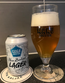 Kakkosena kokeiltavaksi hieman tuunattu versio New Zealand Lagerista, 5,4%, 44 EBU, Green Bullet, Wakatu, Kohatu, Pacifica. IPAa hieman vaaleampi, lievästi utuinen, vaahtoa syntyi hieman vähemmän, haihtuu nopeasti. Sitrusta tuoksussa, kovempia hedelmäpastilleja, klementiiniä. Maku on greippinen ja appelsiininen, varsin runsaasti hiilihappoa tässäkin. Samaa kuivaa pihkaisuutta irtoaa kuin Session IPAssa, peräkärry on kuitenkin lyhyempi. IPL-tyyppinen lager, tässä ei ole mitään hellesin tai pilsin ominaisuuksia, hedelmäisyydellä mennään kevyen katkeraan loppuun asti. Tykkään kyllä enemmän kuin IPAsta, tässä on puhtautta ja tasapainoa, täyteläisemminkin. Aiemmassa Makun New Zealand Lagerissa oli 5,6% ja omat makumuistiinpanoni poikkeavat aika huomattavasti tästä, oletettavasti humalacocktailia on muutettu.—