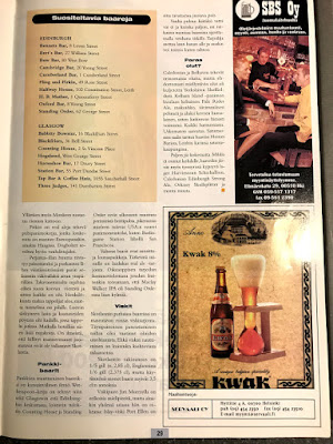 Olutharrastukseni oli edennyt vaiheeseen, jossa päätin tehdä Skotlannin reissulla tarkempia muistiinpanoja kuin aiemmin. Ajattelin kirjoittaa matkakertomuksen ja tarjota sitä Unto Tikkasen uuteen Juomanlaskija-lehteen. Olin lukenut Tikkasen aiemmasta Olut-lehdestä matkatarinoita ja arvelin pystyväni vähintään samaan tasoon. Näin kävikin, sain jutun läpi, tosin Unto pisti pari omaa kuvaansa jutun oheen, omat kuvani olivat niin surkeita. Juttua on nyt aika vaivaannuttava lukea. Välillä tuntuu, että henkisesti ei ole juuri teinivuosista kehittynyt, mutta ehkä jotain muutosta silti tapahtuu jopa keski-iässä. Nykyään kirjoittaisin hieman eri tyylillä.