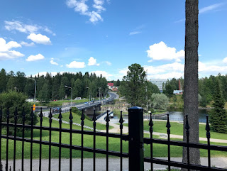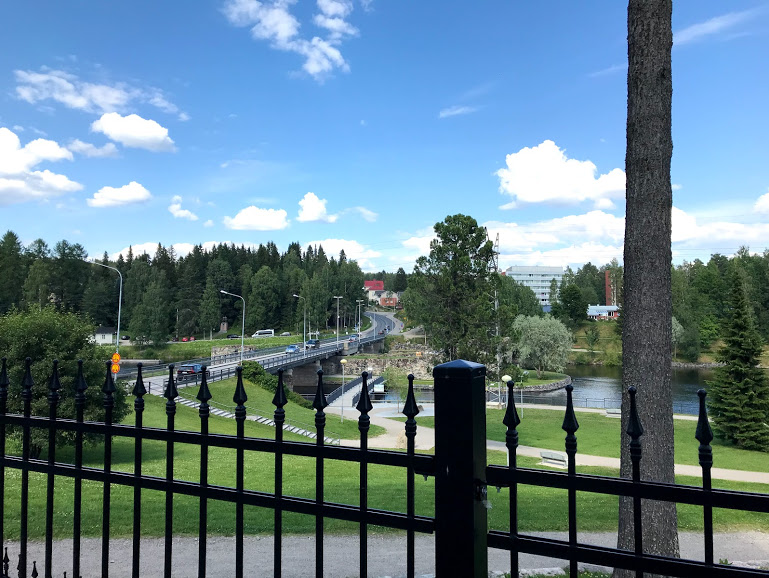 Onnistuin vasta kolmannella vierailukerralla saamaan Kajaanin Anorak-ravintolan talon olutta. Ensimmäisellä kerralla juhannuksen alla oli hana vielä pesemättä ja nyt alkuviikosta oli hanalaitteisto epäkunnossa. Nyt siis olutta kuitenkin saatavissa Kajaanin helteessä ja siirryin lasin kanssa vanhan kirjastotalon takapihan terassille, joka aukeaa Kajaaninjoelle, itse asiassa suoraan rauniolinnan päälle vedetyn kuuluisan maantiesillan suuntaan. Kaupungin ykkössijainti siis ilman muuta.—