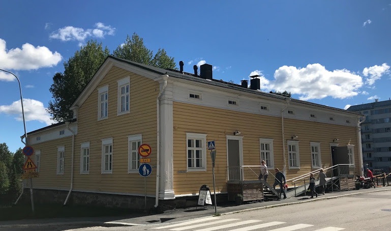 Kajaanin vanha puinen kirjastotalo on itselleni läheinen paikka. Kävin siellä usein lukiovuosina Ristijärveltä 40 kilometrin päästä haastavista liikennejärjestelyistä huolimatta. Olin silloin(kin) kiihkeä jalkapalloentusiasti ja Englannin ulkopuolisesta huippujalkapallosta oli vaikea saada tietoa siihen aikaan. Olin jo ällistyttävän upean World Soccer -lehden tilaaja, mutta Kajaanin kirjastoon tuli Welt am Sonntag, josta kävin säännöllisesti tavaamassa Bundesliga-kierrosten tapahtumat. Kirjastossa oli myös joitakin yksityiskohtaisia saksankielisiä jalkapallohistoriateoksia, joita pidin erityisen suuressa arvossa. Janosin jo 1970-80 -lukujen vaihteessa tarkkaa tietoa jalkapallon aiemmista vaiheista, erityisesti 1950-luvulta, jota monet 1970-luvun auktoriteetit pitivät jalkapallon kulta-aikana. Kirjasto on jo aikaa sitten muuttanut uusiin hienoihin tiloihin ja vanha puurakennus linnanraunioiden lähellä oli kai jo purku-uhan alla. Nyt talossa on viimeisen vuoden aikana avautunut Anorak-ravintola, jossa en ole vielä ehtinyt käymään. Kuulin Aleksi Haapavaaralta, että Nälkämaa-kiertolaispanimon uusia tuotoksia olisi siellä tarjolla.—