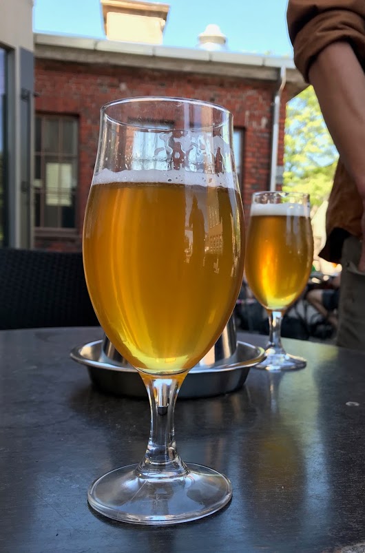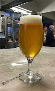Tervetulodrinkkinä tempaistiin käymistankista Stadin Koivumahlalageria, joka on Sorachi Acella ryyditettyä, 5,1%. Aika hyvin mätsää humala ja mahla. Seuraavaksi Genuine APA, joka suunnattu burgeriketjulle— Burger Joint, jos oikein ymmärsin. Tämäkin 5,1% ja varsin samea.— Hauskaa keskustelua Konttisen kanssa uusimmasta DDH-trendistä, Stadihan on tuplakuivahumaloinut oluitaan niin kauan, että Timokin on jo ehtinyt unohtaa aloitusajankohdan. Tämä olut oli vielä raakaa. Seuraavaksi etelähelsinkiläiselle meksikolaisravintolalle tuunattu IPA, jonka lyhenne avautuu muotoon Incredible Pale Ale. Tässä ei oltu säästelty limettiä, sen tuoma aromi tuntui jo käytännössä inkivääriltä. Odotetusti ei erityisemmin kohdannut vastakaikua minun suunnalta, mutta eihän tämä huono ollut. Ehdin bongata teistingin tuoksinassa Suvilahden kuuluisan robottibussin ja sitten lasiin osui vielä Galactical Citra Pils, joka lopulta vapautti tilanteen omakohtaisesti. Nyt löytyi kunnon kamaa, ehkä Stadin paras tuotos tältä kalenterivuodelta. Hedelmäinen tuoksu, tässä siis Galaxya ja Citraa. Ei tietenkään erityisen pilsmäinen klassisessa mielessä, mutta tasapainoa on näppärästi. Jopa enemmän katkeroa kuin Stadilla yleensä.
