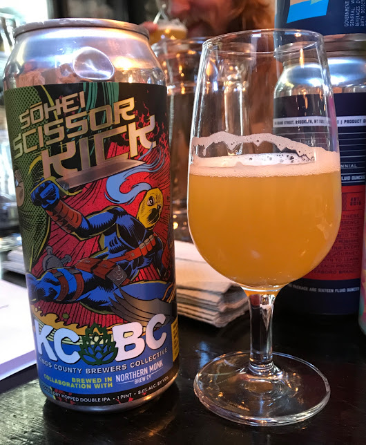Viimeisenä Chrisin tuliaisena Brooklynistä Kings County Brewers Collectiven (KCBC) ja leedsiläisen Northern Monkin yhteistuotosta Sohei Scissor Kick, 8%. Vic Secret, cryo-versio Simcoesta ja jotain kokeellista Long Islandin humalaa NY X14. Raikas tuoksu. Maku vaisumpi, ei mehuisuutta tarpeeksi. Tämä ei täysin vakuuttanut, Grimmin keskimmäinen varsinkin jäi selvästi vakuuttavammaksi.—