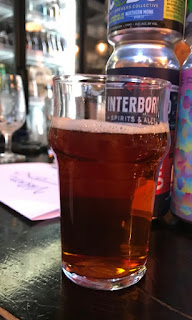 Seuraavaksi tsekattiin Chrisin tuliaiset. Ensimmäisenä Other Halfin jo legendaarisesta panimosta spin-offina irtautuneen Interboron tuotetta. Ehdin heiltä viime kesänä Washington DC:ssä maistaa yhtä kollaboa. Mad Fat! Fluid, Chrisillä oli oluen teepaitakin, joten varmaan kotiseudullaan arvostettua tavaraa. IPA kyseessä, 6%, vain 33 IBU, Mosaic, Equinox, Centennial. Samea, ehkä jäi vielä hieman liian lämpimäksi. Maku siirtyilee mehuisuuden ja yrttisyyden rajalla, ei katkera. Tuoksu jäi vajaaksi, mutta maku on parempi. Ehkä hieman viimeisimmistä kuvioista pudonneiden Konttisen ja Sysilän mielestä maku oli ”ummessa”, ei aukea tarpeeksi. Ymmärrän osittain näkemystä, ei ehkä ollut optimaalisessa tilassaan, mutta tykkäsin kyllä.