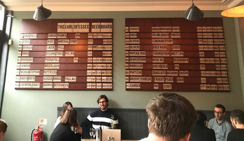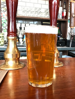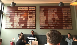 Docklands-junalla takaisin Bankiin, josta Northern-linjalla Islingtonin Angeliin. Kovaa tungosta Islington High Streetillä, mutta kävelin hieman sivummalle hiljaiselle kadulle, jossa olin kuullut Earl of Essex -pubin keräävän suosiota. Ulospäin pieni klassisen näköinen kulmapub, ei kovin suuri neliömäinen tila sisältäkään, mutta silti jonkinlainen saaribaari, tiskin ympäri saattoi siis kiertää. Todella runsaasti jengiä, lapsiperheitäkin, sunday roast -perinne on edelleen täysissä voimissaan. Mittava valikoima panimotuotteita, kuusi caskia (joista tosin puolet perryjä tai siidereitä), 15 kegiä. Informaatiotaululla luki North Brew Azacca Rakau Pale Ale, jonka valmistaja mitä ilmeisemmin leedsiläinen North Brewing Company. 4,0%, Kirkas ja kaunis olut, trooppiset hedelmät hillitysti esillä, hyvin pehmeää. Mutta liian ohueksi auttamatta jää, ei katkeroa. Lontoo, Earl of Essex, 9.12.2018.