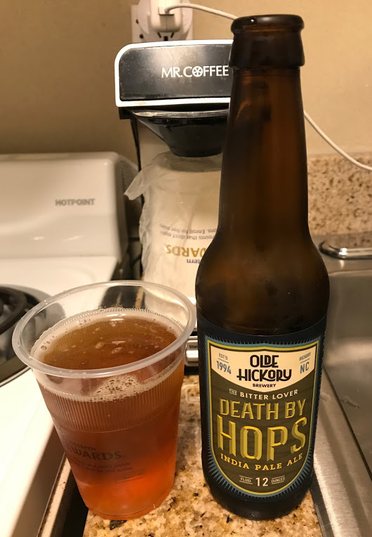 Vuoden paras IPA-nimi? Lisää motellioluita, 7%. 108 IBU. Pullotuspäivä aika tuore, 7/21/17. Tuoksua en oikein saa motellin muovimukista esiin. Nyt on sitrusta, keskitasoisesti hiilihappoa, myös trooppista hedelmää, maltaisuus myös mukana. Pihkaa vähemmän kuin Highlandin IPAssa, mutta katkeroa vastaavasti enemmän. Ashevillestä poistuessa tuli ajettua Hickory-kaupungin ohi ja Olde Hickory tulee sieltä, sekin perustettu 1994. Tämä olut on aika hyvää, harmittavasti ei tullut hanassa vastaan North Carolinassa. Ostopaikka Kill Devil Hills (NC), Chip’s Wine and Beer Market.