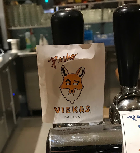 Pitkästä aikaa vierailu Perhoon, jossa vaikuttaa nyt uusi olutmestari Juha Sinisalo. Hannu Nikulaisen 25k-olutjuhlallisuuksia odotellessa tyyppäys uudesta saisonista, 6,8%. Tuoksu hieman arveluttavan simamainen, mutta maku on miellyttävämpi. Belgiestereitä, lievästi pippurisuutta, sitrushedelmiä, varsin paljon hiilihappoja. Hyvä tasapaino, taitaa olla selvästi paras koskaan maistamani Perho-olut. Samassa yhteydessä tuli ensi kertaa tavattua Porista paikalle päässyt Ölmönger-blogillaan mainetta niittänyt Janne Santala. Perho, 12.12.2018.