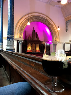 Ovella jonoa, perinteistä villapaita-harmaapääjengiä CAMRAn tyyliin, menin jonon jatkoksi ja sulauduin tietysti tällaiseen viiteryhmään täydellisesti. Kaikki näyttivät yli 50-vuotiailta, miesoletettuja myös. Upea miljöö, ei kovin iso tila, tiskit alakerrassa kahdessa rivissä, ylhäällä istumapaikkoja. Kävin varaamasta ylhäältä paikan ja taktiikkana join aina yhden salissa alhaalla seisoskellen ja toisen rauhallisemmissa oloissa yläkerran penkillä. Avaukseen tuli taas alkuhämmenyksessä mahdollisimman kehno tuote, ELB:n Orient Xmas pale, jossa aasialaisia mausteita riittävästi pilaamaan kaikki mahdolliset positiiviset ainekset.