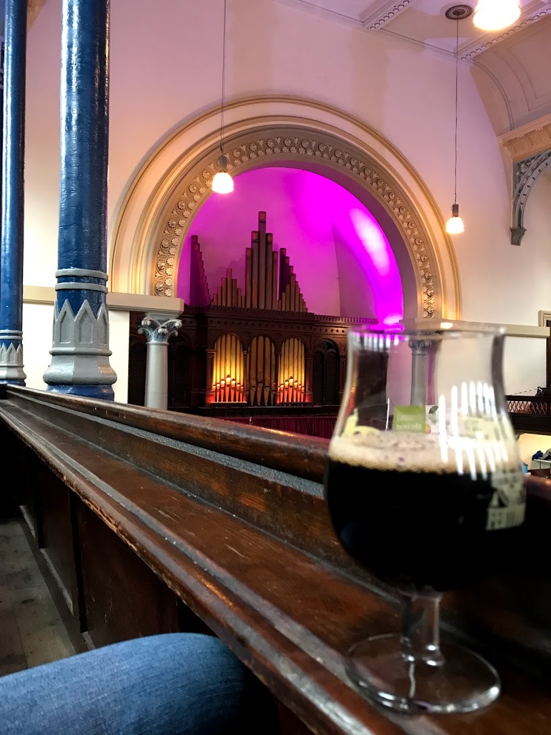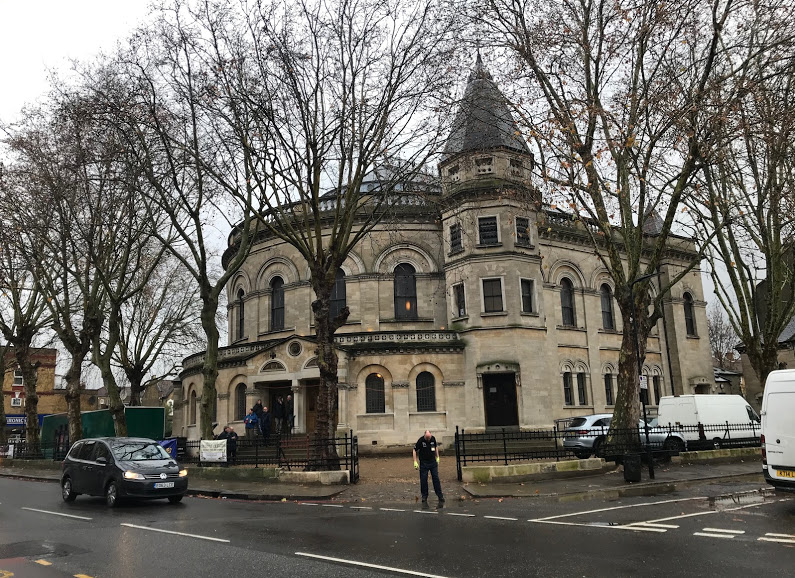 Näillä kulmilla Hackneyssa en ole ennen liikkunutkaan, mutta näppärästi paikalle Overgroundilla Liverpool Streetiltä. Kappelia vastapäätä Clapton Craft -niminen olutkauppa, josta yritin tilata neljästä hanasta odotteluolutta, mutta hanat varattu pelkästään growlereiden täyttämistä varten. Huono homma, britit eivät ole vieläkään oikein kartalla missä mennään. Totta kai kaupoissakin pitää saada dokata paikan päällä.