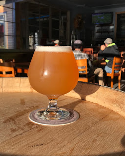Fort Georgella näytti olevan viereisessä korttelissä jokin mittava showroom, jossa paljon tynnyreitä esillä. Pyörähdin sisällä, paljon jengiä, mutta en saanut hommasta otetta, joten painuin pois. Tuskin oli minun juttuja, ehkä jotain ultraharvinaisia puukypsytyksiä imperial stouteista, mutta who cares. Ilmeisesti se oli Lovell Taproom varastotilan vieressä, senkään ei pitänyt olla maanantaina auki. Anyway, siirryin seuraavaan kortteliin, jossa yllättäen Reach Breakin panimo avoinna, ennakkotietojen mukaan oli toisin. Pienehkö vaatimaton tila siiderihtimön vieressä, loppuillan aurinko paahtoi painostavasti sisään. Monenlaisia barrelbrettavirityksiä, jotka ohitin kylmästi tilaamalla IPAa. 6, %, sameahko tapaus, kuohkeaa, maltaisuus pinnalla, heikosti hedelmää. Puhdas tämä on, mutta todella vaisu, Tuoreus positiivista, mutta makua saisi olla olla paljon enemmän. Loppuosan lievä katkeruus positiivista, ehkä tässä on ohuita aineksia johonkin käyttötilanteeseen. Kävelin takaisin motelliin kohti auringonlaskua. Astoria (Oregon), Reach Break, 17.9.2018.