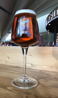 Päätin kokeilla Miguel-skaalan vahvimman tuotteen, siis 9,1%. Sama väri kuin Bilbaossa. Kuivaa maltaisuutta, vähemmän siis makeutta. Viina paistaa vähän läpi. Ei paljoa, kyllä tätä kohtuullista on juoda. Tai siis kohtuullisen sujuvaa. Bilbao, Bilboko Aireportua, San Miguel Tapstation, 16.3.2019.—