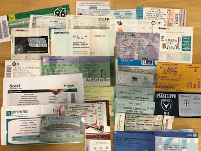 Hmm, olutta siis oli tarkoitus käsitellä. Kävin Oulussa 1980-luvun alkupuolella katsomassa livenä muutaman ottelun, mutta suomalainen jalkapallo ei minua innostanut millään tavalla. Tuskinpa olutta oli peleissä tarjolla, tosin en tässä vaiheessa ollut siitä kiinnostunutkaan. Siirryttyäni vähitellen työelämään ja tienattuani lopulta hieman rahaa vuodesta 1987 alkaen aloin käydä ulkomailla katsomassa jalkapalloa, aluksi lähinnä Lontoossa. Olutkin jo kiinnosti, mutta sitä en muista stadioneilla juoneeni. Siihen aikaan oli varsin vähän (epäsiistejä) vessoja. Mieleen on jäänyt Wienin Praterstadionilla miesten vessa, joka tarkoitti vain lievästi kaltevaa lattiaa. Välttelin siis oluen juontia matseissa, jottei tarvitse jonottaa vessaan. Livenä näkemäni pelit huipentuivat jo varhain 1992 Lontoossa (viimeiseen) Euroopan Cupin finaaliin FC Barcelona – Sampdoria. Ostin kylmänviileästi vanhan Wembleyn ulkopuolelta mustasta pörssistä lipun Sampdorian kannattajien keskelle. Tätä kokemusta on ollut vaikea ylittää, oikeastaan siihen pystyisi vain MM-finaalin näkeminen paikan päältä. Yhden kerran olen sitä vakavasti yrittänyt. Hankkiuduin Pariisiin 1998 MM-finaalin aikana ja jututin Stade de Francen ulkopuolella lipputrokareita. Finaaliin päätyivät isäntämaa ja Brasilia, mahdollisimman huonoa tuuria, koska hintapyynnöt nousivat pilviin. Halvin kuulemani tarjous oli 30 000 frangia, budjettini ei siihen riittänyt.