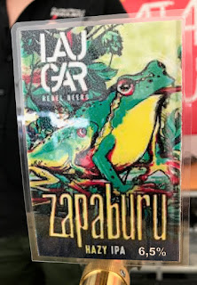 Baskimaasta Bilbaon lounaispuolelta Laugar-panimon kamaa. Ostadar IPA, hieman utuinen,— matalaprofiilinen, sitrusta, kuivaa, ehkä liian pliisu. Zapaburu samalta panimolta modernimpi hazy IPA. Mehua on, mutta ei kovin aromaattista, ei katkeroakaan.