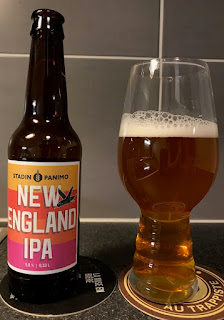 Hyvin kirkas olut, kullankeltainen väri. NEIPAn pitäisi olla samea, mutta alan olla tyystin kyllästynyt tähän hössötykseen. Yleensä ohitan oluen ulkonäön olankohautuksella, vain maku ratkaisee. Miksi minun nyt pitäisi olla kiinnostunut tämän mahdollisen tyylin ulkomuodosta? Mutta vaahtoa olisi voinut hieman enemmän muodostua, sillä on merkitystä makuunkin. Tuoksu on kuitenkin aitoa suvilahtelaista, trooppisen hedelmän voimakas henkäys. Maku on hieman odotettua kuivempi, maltaisuus on pinnalla, hedelmäisyys on enemmän geneerisempää brittiläistä variaatiota. Mukavasti vähäinen hiilihappoisuus. Katkeruus jättää toivomisen varaa, kuten usein Stadin kohdalla. Ehkä pienoinen pettymys, liian samanlainen monien muiden Stadin oluiden kanssa. Ostopaikka Helsinki, Kallion Alko.