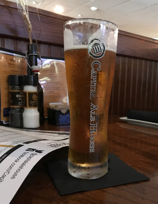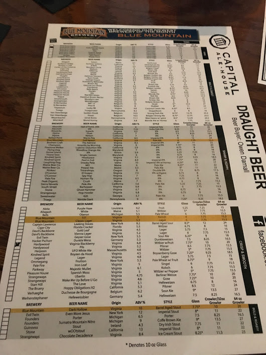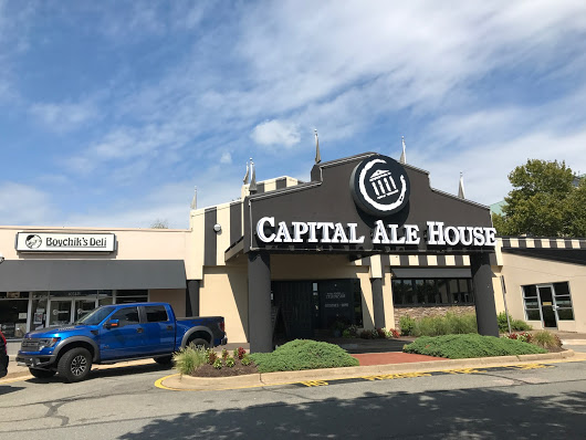 Aikaeron takia tietysti tuli herättyä varsin aikaisin Falls Churchissä ja tien päälle ehdiittiin ennen kahdeksaa. Yllättävän pahaa ruuhkaa lauantaiaamuna— I-95:llä Fredericksburgin tienoilla, aikaa kului kolme tuntia päästä Richmondiin hillittömässä helteessä, pakko käyttää BMW:n onneksi kiinteää kattoa auringon estämiseksi. Hyvänä uutisena oli se, että päästiin lounaalle tiedustelemaani Capital Ale Houseen Richmondin länsipuolella. Hyvällä tietuurilla oltaisiin oltu tässä vaiheessa jo paljon kauempana, jossa tuskin mitään craft-olutta.—
