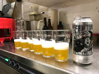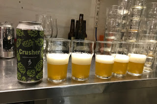 Session huipentumana olivat Tapani Rönnin suoraan Vermontista tuomat Alchemist-oluet. Alkukesästähän sain Jani Simosen toimittamana— Kööpenhaminasta ensimmäistä kertaa juotavaksi sekä Focal Bangeria että Heady Topperia. Nyt samat oluet ehkä siis vielä hieman tuoreempina. Heady Topperissa todella juicyä fruitia, vaalea hämmentävä samea väri kääntyy lähes vihreäksi. Katkeroakin löytyy taas. Focal Bangerissa huikea Mosaicin aromi, sitruksisuus hillitöntä, herukkaa, tuntui taas paremmalta kuin Topper. Konttisen arvion mukaan oluessa on puhdasta kainaloa. Uutena kokemuksena 9-prosenttinen Crusher, makeampi kokonaisuus, pihkaa, sitrusta, peräkärrykatkeroa. Upea olut, mutta ehkä tasapaino on silti vinossa, Focal Bangerissa se on kohdallaan.—