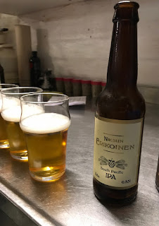 Yksi illan parhaita oli Stadin Niksun Erikoinen, varsinaiselta nimeltään South Pacific IPA, 5,6%. Erittäin hyvässä kunnossa, aromaattinen ja katkera. High Sleep IPAn uusin versio ei sekään huono, mutta ei oikein erottunut monimuotoisessa setissä. Kashmir Palen Alen olemuksesta virittyi pitkä keskustelu, raa’an oluen vihanneksisuus on hävinnyt, mutta mikä kevyt hedelmäisyys kuvaisi olutta parhaiten? Sysilä ehdotti arbuusia tai vesimelonia ja siihen suuntaan se ehkä sijoittuukin. Beer Hunter’sin pahasti laadultaan vaihdellut CCCCC IPA ei ehkä ollut nytkään täysin parhaassa iskussaan, itselleni se nyt upposi ihan näppärästi.