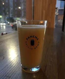 New England -tyylistä tupla-IPAa Lappeenrannasta, 8,5%. Nyt on todella sameaa, tuoksussakin on mehua kunnolla. Maku on hyvin mehuinen, kuiva silti, alkoholi ei tunnu. Ei juuresta, tuoretta on. Erittäin hyvin toimii, peräkärry kytkeytyy vähitellen, mutta loksahtaa sitten hyvin kyytiin. Tällä tyylisuunnalla Tuju on parhaalla kansainvälisellä tasolla. Kilpailu on juuri nyt kovaa, mutta tässä on contender kaikille areenoille. Panema, 10.2.2019.