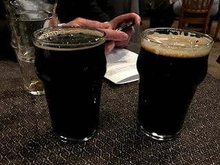 Perinteiseen suomalaiseen klassisten baarien Gallowsin ja Urhon tyyliin tilasin pienet tuopit kahta olutta kerrallaan. Ensimmäisenä kokeilin Perhossa tehtyä baarin omaa tuotosta, nyt nimellä Pyhän Urhon Milk Stout. 4,8%, kirkkaasti koko tarjonnan kevein tapaus, kuivaa, ohutta, kahvia, ei katkeroa. En tapahtuman brosyyrissä mainostettua savua löytänyt, en kunnolla suklaatakaan. Seuraavaksi Pennsylvaniasta Victoryn Black Forest Cake Stout With Cherry, 7,5%. Makea tuoksu, makea karamellinen maku. Kirsikka tuo happamuutta, Flanderin punaisen fiilistä. Mielenkiintoinen, mutta ei miellyttävä. Ei oikein jälkimakuakaan.