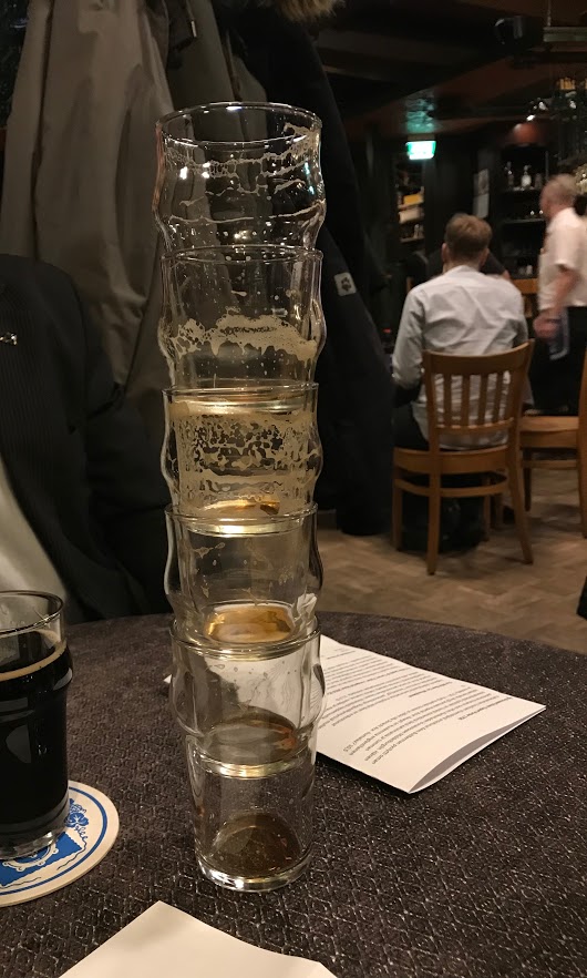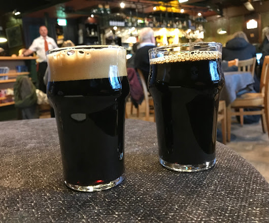 Tapahtuman virallinen nykyinen nimi on St. Urho’s Pub Portteri- ja Stoutpäivät. Tästä pääsen toiseen mieliaiheeseeni, voisin aloitteena ehdottaa globaalia kansanäänestystä tummasta pintahiivaoluesta, olisiko sen nimi stout vai porter. Niillähän ei ole mitään eroa, joten pitäisi nyt vain luopua toisesta, jotta elämä olisi helpompaa. Oma valintani olisi porter, stout voidaan unohtaa. Tarjolla Urhossa 12 olutta, joista neljä ennen kokeiltua (Ruosniemi Vuorineuvos, Midtfyns De Molen X-Porter, Fat Lizard Blacktop, Wild Beer Wineybeest). Hörhöjä yllättävän vähän paikalla, olisiko Urho jo liian uncool näyttäytymispaikka itsetietoisimmille hipstereille? Tai sitten halpa kalja piti jengin poissa,— HOK-Elannon juottamoissa oli samaan aikaan jokin neljän euron happy day päällä.—