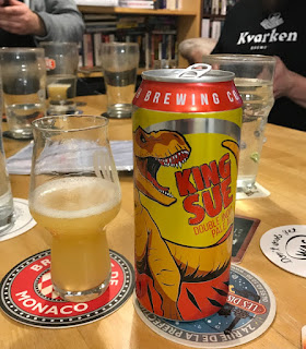 Toppling Goliathin King Sue tupla-IPA, 8,5%, Citra sinkkuna. Tämäkin samea. Kirpeämpää hedelmää, tuntuu hieman karkeammalta kuin edelliset Trilliumit. Katkeroa taas ilahduttavasti, tätä ei ole USA:n keskilännessäkään unohdettu, toisin kuin Euroopan moderneissa IPA-valmistamoissa. Hiilihappoa edellisiä enemmän, mutta hämmentävän hyvää tämäkin.