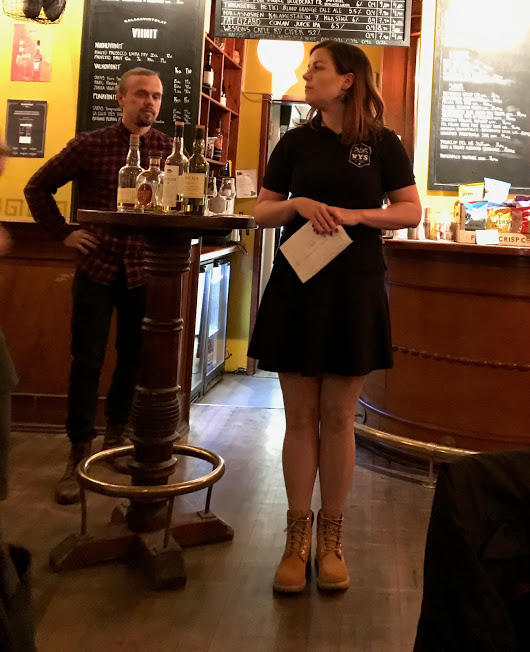 Puheenjohtaja Veera Salo toivotti vieraat tervetulleiksi ja Diageon edustaja esitteli tällä kertaa teistingissä olevat viskit. Seuran ns. vahva mies Jarkko Nikkanen veti taas viskivisan, joka ei ollut edellisvuosista vaikeutunut, jos ei helpottunutkaan. Kinkkukiusausta taas, olen jo luopunut ehdottelemassa menun rukkaamista. Viskit olivat tällä kertaa hieman liian tavanomaisia ja tuttujakin. Lowlands-osastolta Glenkinchie 12v, kevyesti hedelmää, miksei vaniljaakin. Klassinen Cardhu alkaa olla jo liian pölyttynyt, en saanut siitä otetta oikein mistään, vaisumpi kuin Glenkinchie. Broran läheltä ponnistava Clynelish tuntemattomampi ja tässä olikin hieman potkua kirpeämmällä hedelmäisyydellä. Lopuksi sitten savunäyte Caol Ilan jättitislaamolta, pekonia ja päärynää. Hauska tapahtuma jälleen kerran, samoina toistuvat rituaalit tuovat rakennetta elämään, mutta ehkä jotain variaatiotakin vielä jatkossa nähdään.