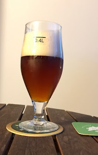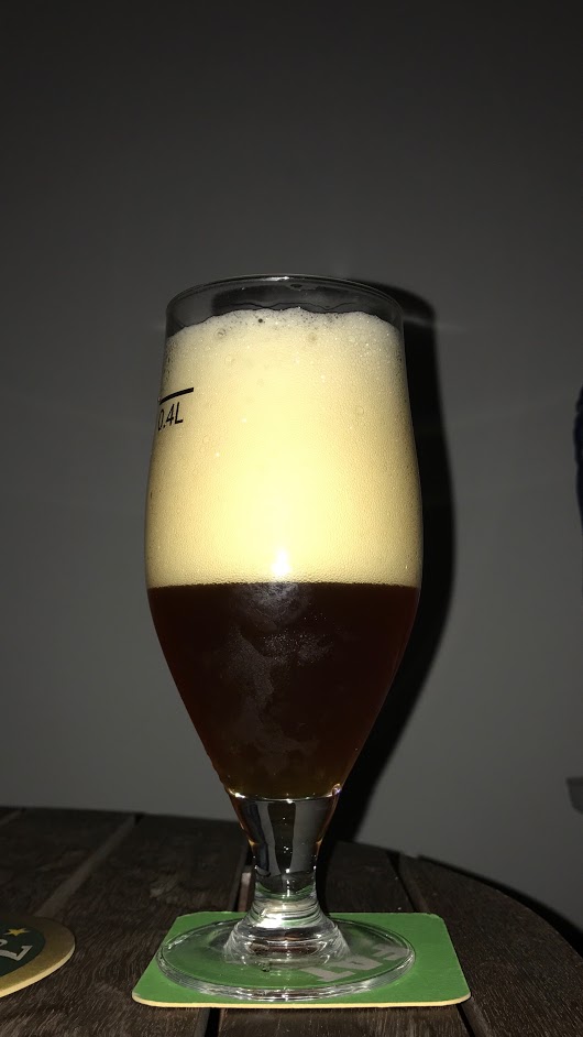 Hollolalaisen kotipanimon kolmas näyte on epäilyttävästi savubitter, 4,7%, 48 IBU, sinkkuhumalana Admiral. Elokuinen ilta jo pimenee Vallilassa kuvanottohetkellä. Olut on punaruskeaa, lähes kirkasta, tiivistä vaahtoa. Tuoksussa huikeaa savuisuutta, tervaa ja turvettakin. Aivan kuin rauchbierissä. Mutta maku on erilainen, savu painuu heti taaemmas, kevyt hedelmäisyys nousee etualalle. Yhteisesti maku on hieman tahmeasti tunkkaisempi, hiilihappoakin on nyt liikaa. Mallasrunko ei komppaa tarpeeksi, jää ohueksi. Mielenkiintoinen kokeilu, mutta bitterpohjalla savumallas ei tunnu toimivan erityisen maistuvalla tavalla. IBUja on melko paljon, mutta jälkimaku jää lyhyeksi. Ei mitään virheitä tässäkään näytteessä, mutta ehkä pähkinäinen perusbitter olisi taas ollut parempi päätös.