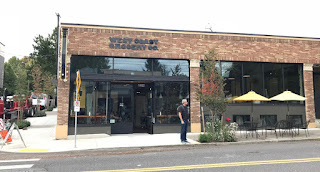 Uusi panimobaari Stark Streetillä, muutama kortteli Base Campistä itään, paikallisista perusuutisista huomasin lanseerauksen. Kahdessa tasossa tilaa, valoisasti katujen kulmassa, 10 omaa olutta jo. Omituisesta nimestä huolimatta ruoka ei erityisemmin korostettuna. Perus-IPAa tilasin, kuinkas muutenkaan, tarjolla olisi ollut myös hazy- ja brut- variaatiot. Lagereita myös, selvästi vakavalla otteella ollaan liikkeellä. IPA aika sameaa, raskaasti hedelmää ja mallasta, mutta ei kovin raikkaalta tai puhtaalta tunnu. Pihkaa ja katkeroa on tuntuvasti, mutta kyllä tässä vielä kovasti säätöä tarvitaan. Sain maistiaisen hazy IPAsta, se oli raikkaamman hedelmäinen, joten ei panimoa kannata vielä täysin dissata. Portland (Oregon), West Coast Grocery, 14.9.2018.