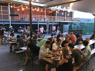 Ashevillen tunnetuimman panimon Wicked Weedin myynti Anheuser-Buschille herätti äskettäin hillitöntä raivoa riippumattomuuteen vannovassa craft-skenessä ja boikotteja julistettiin usealta taholta. Itselläni ei ole tällaisia intohimoja, riippumattomuus on aina suhteellista. Oluiden laatu saattaa ruveta heikkenemään, mutta ehkä vielä ei ole niin tapahtunut. Wicked Weedin panimoravintolan ohi Broadwaylla tuli käveltyä Bhramariin laskeutuessa, mutta luulin paikkaa joksikin perusravintolaksi. Burialissa ja Green Manissa ei näyttänyt olevan ruokaa, joten suuntasimme siksi Wicked Weediin. Porukkaa oli paljon, istumapaikkaa ei ravintolasta löytynyt, mutta ruokaa oli alakerran taproomissakin. Nälkä lähti, mutta kana-annos ei kyllä kovin kummoinen ollut. Pernicious ehkä Wickedin maineikkain IPA, 7,3%. Vähän samanlaista kissanpissaherukkaisuutta taas kuin illan muissakin oluissa. Puhdasta kamaa ja nyt katkeroakin lähes riittävästi. Asheville (NC), Wicked Weed, 21.8.2017.