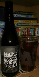 Musta olut Skotlannista kaatuu lasiin heikosti ruskeaa vaahtoa muodostaen. Tuoksuu...