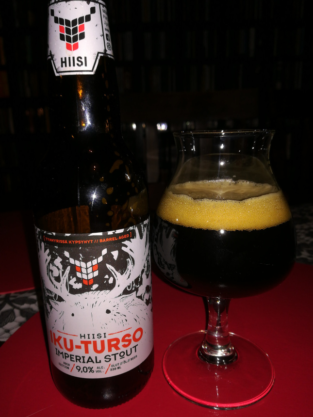 Panimoyhtiö Hiisi, Suomi. Imperial stout, 9%. Pullo, 0.33l. Jaahas, sitä...
