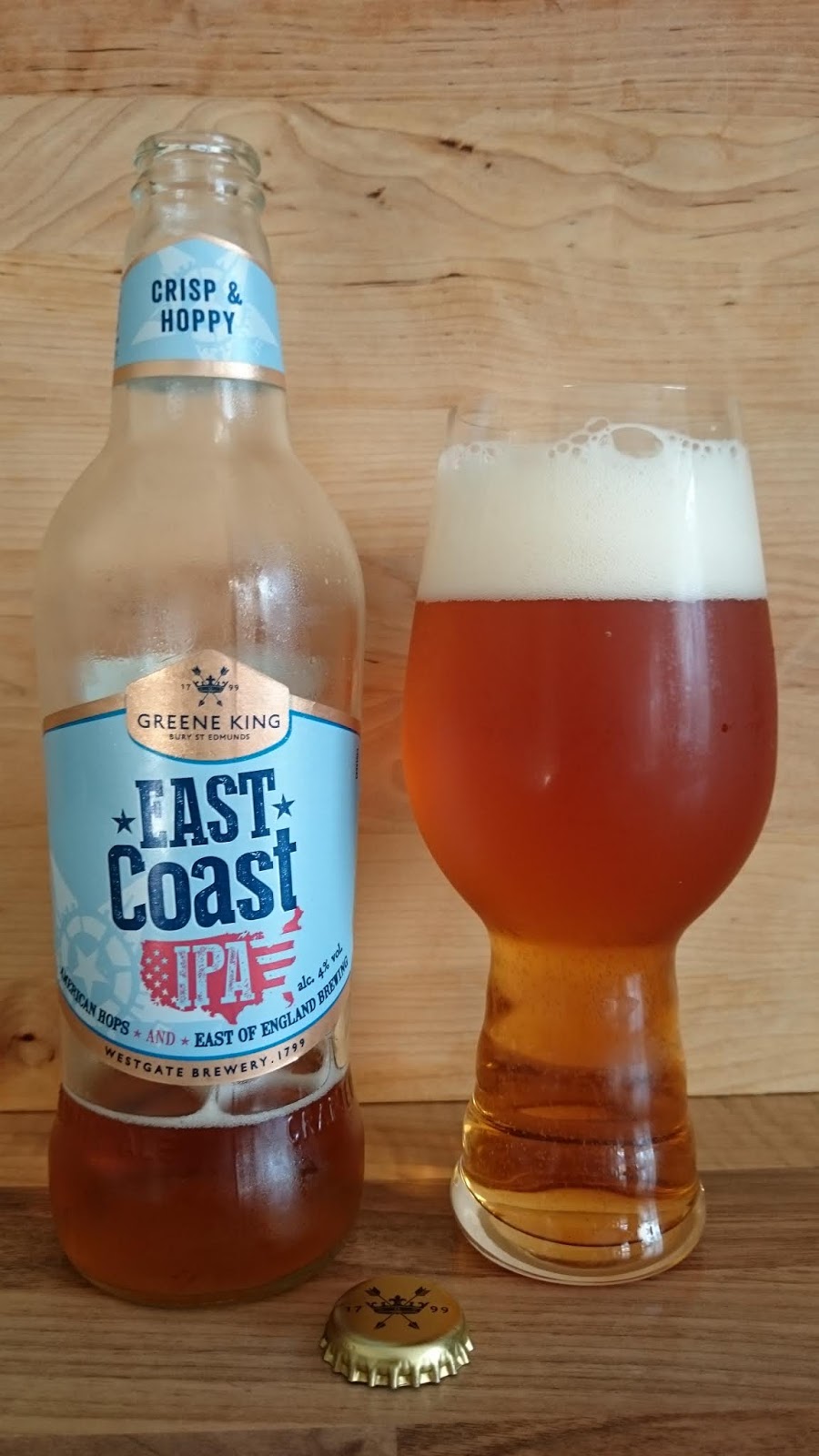 Loppukommentit: Nimestään huolimatta Greene Kingin valmistama East Coast IPA muistuttaa tyyliltään hieman perinteisiä brittiläisiä Golden/Blond Aleja. Se on naamioitu ovelasti jenkkihumaloinnilla, minkä vuoksi tähän asiaan ei kiinnitä kovin helposti huomiota. Olipa kyseessä sitten IPA tai Ale, niin joka tapauksessa mestarillisesta oluesta ei tällä kertaa ole kyse.