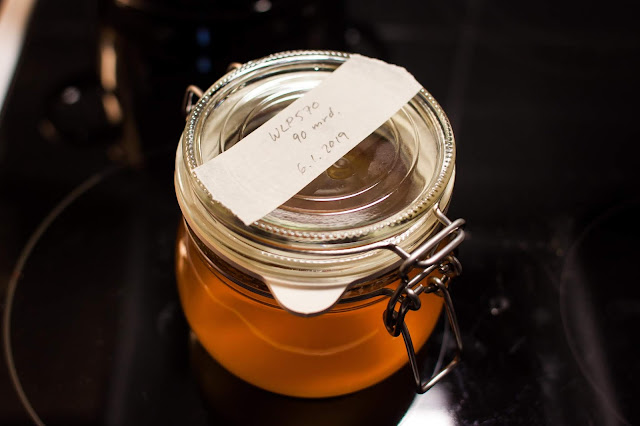 Meillä tämä purkin käyttäminen on ollut myös pakon sanelemaa, koska startteri kasvatellaan eri osoitteessa kuin missä paneminen tapahtuu. Niinpä olen panohommiin lähtiessäni dekantoinut ylimääräiset nesteet pois ja heittänyt purkin reppuun. Hiiva lämpenee siinä panopäivän ajan, jolloin se on hiivaamisvaiheessa valmiina toimintaan.